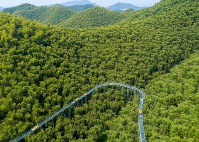 2022年7月27日,在浙江省湖州市安吉县上墅乡刘家塘村的星潮营地竹林漂流项目上,游客正在参与玻璃滑道漂流,一边享受万亩竹林的美丽环境,同时也感受到清凉的夏日。据了解,当地积极发挥绿水青山的生态优势,引进旅游休闲项目,吸引游客前来游玩、打卡,带热乡村旅游,助力乡村振兴。