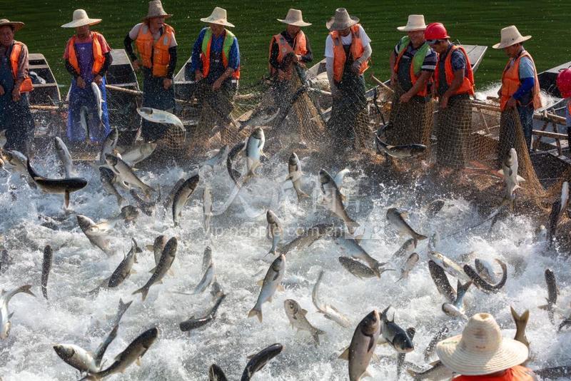 2022年7月28日,江西省新余市仙女湖的渔民们正在开展“巨网捕鱼”,湖面上呈现出“鱼跃人欢”的丰收景象。 仙女湖渔业资源丰富,盛产胖头鱼、鲤鱼、青鱼、鲢鱼等50多种鱼类,最大的鱼有上百斤重,每年有500多万斤有机鱼远销广东、浙江、江苏、上海、重庆等全国多个省市。