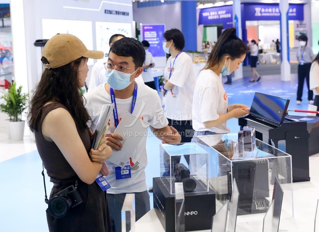 8月5日,参观者在湖北武汉汉阳区国际博览中心了解工业设计博览会展示的产品。