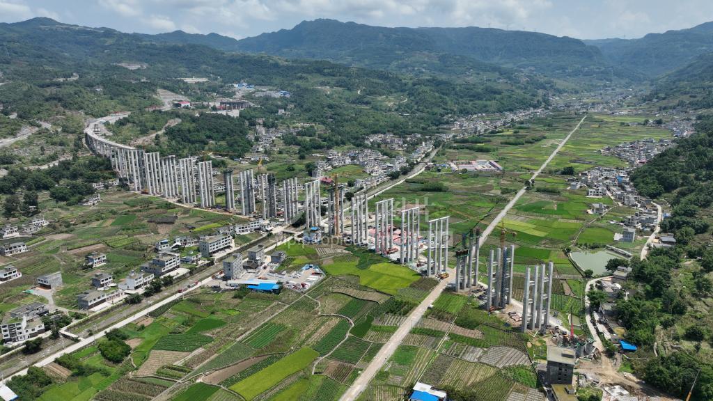 2022年8月5日,位于四川省宜宾市珙县境内的宜威高速上罗特大桥正建设中。