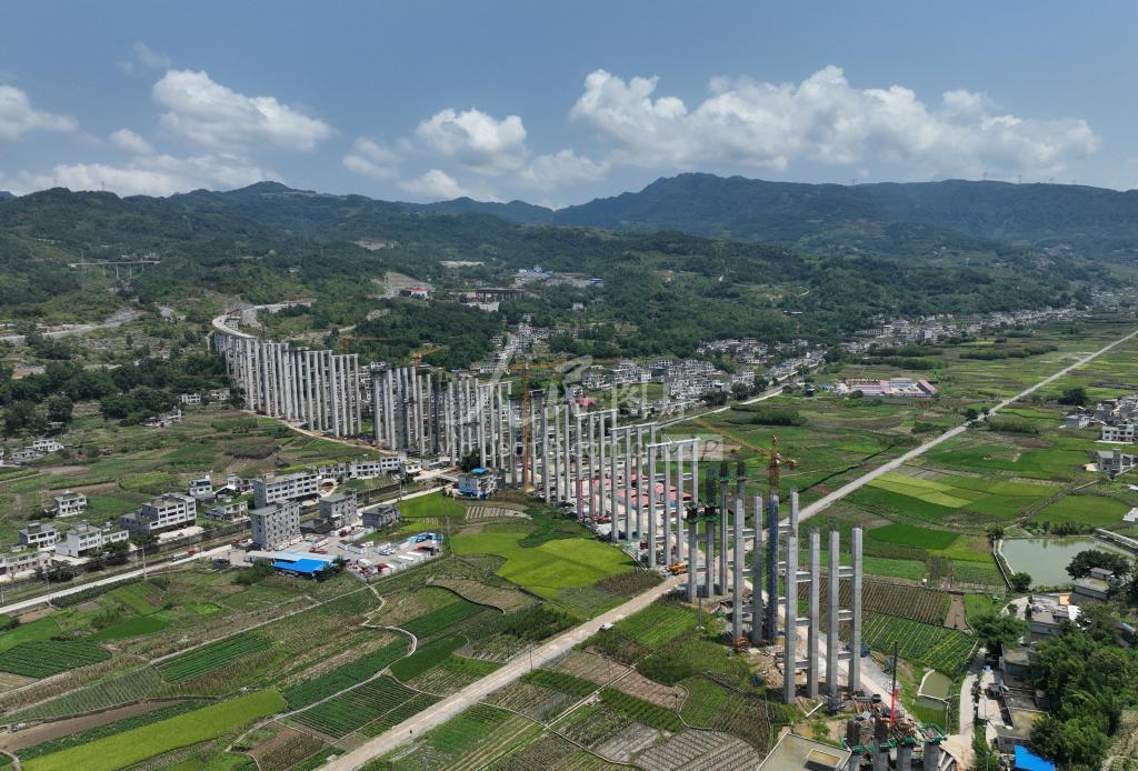 2022年8月5日,位于四川省宜宾市珙县境内的宜威高速上罗特大桥正建设中。