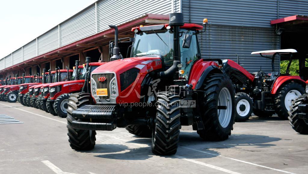 2022年8月5日,河南省洛阳市,在中国一拖大拖公司内,工作人员对220马力混合动力拖拉机进行调试。