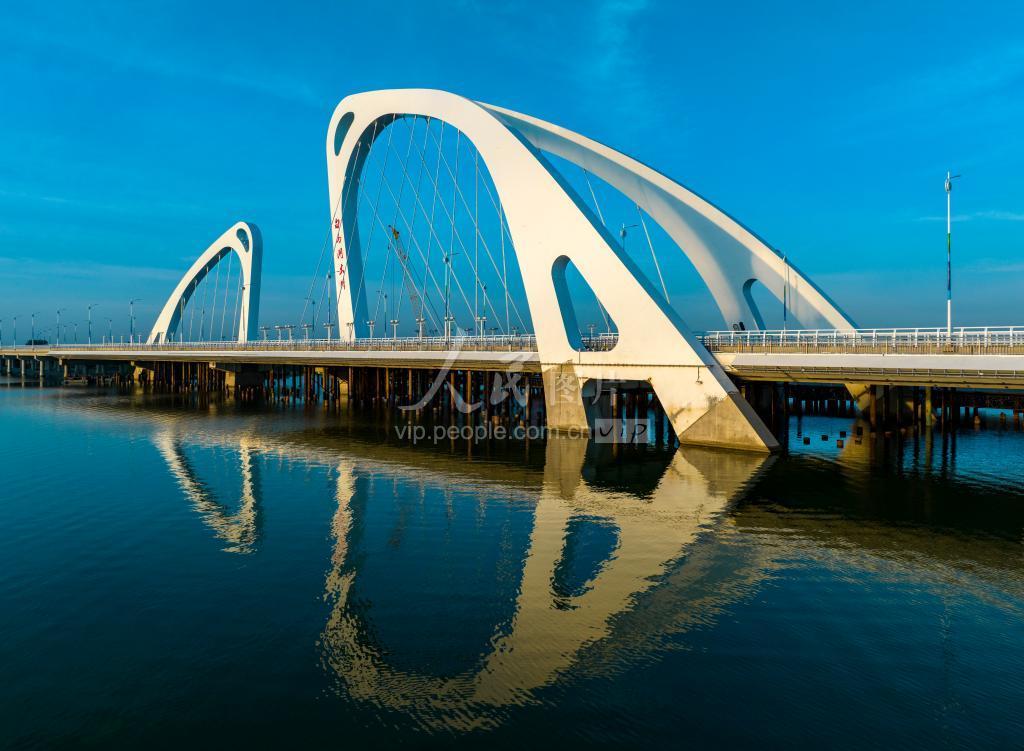 上传时间: 2022-08-13 13:53:18 图片说明: 2022年8月13日,晨光中的江苏省淮安市白马湖大桥。