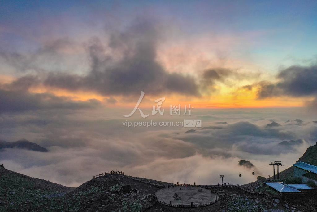 2022年8月15日,四川省阿坝州黑水县达古冰川风景名胜区索道上站(海拔4860米),云蒸霞蔚,美景如画。