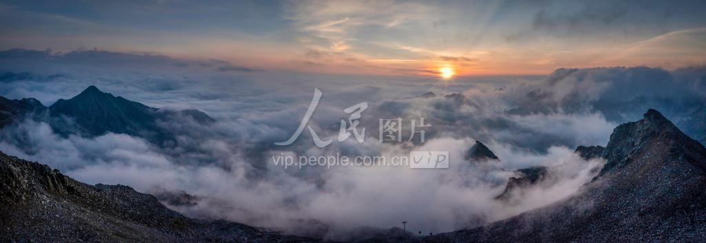 2022年8月15日,四川省阿坝州黑水县达古冰川风景名胜区索道上站(海拔4860米),云蒸霞蔚,美景如画。
