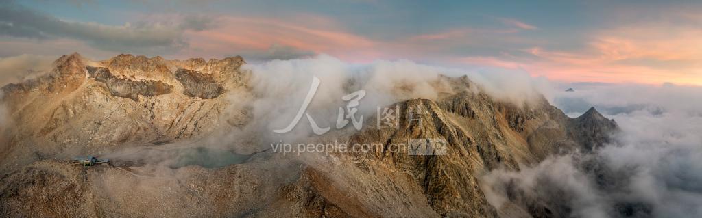 2022年8月15日,四川省阿坝州黑水县达古冰川风景名胜区索道上站(海拔4860米),云蒸霞蔚,美景如画。