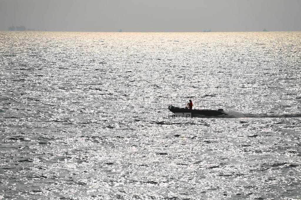 2022年7月26日,施工现场橡皮艇迎风破浪。