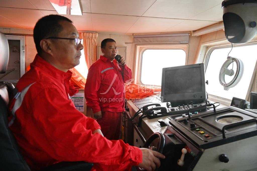 2022年7月26日,技术人员在船上接收物探地震资料。