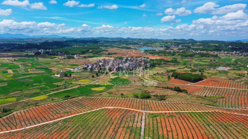 2022年8月18日,湖南省永州市新田县金盆镇徐家村,蓝天白云下,四通八达的道路、整齐成行的沃柑与远处多彩的田园、错落有致的村庄民居相映成趣,构成了一幅产业兴旺的美丽乡村画卷。 近年来,湖南省金盆镇以土地富硒资源优势为依托,采用“公司+基地+农户”模式,连片种植沃柑,兴建金盆镇柑桔产业示范园,发展休闲采摘、观赏体验、科普教育等休闲观光农业,促进农业增效农民增收,助力乡村振兴。