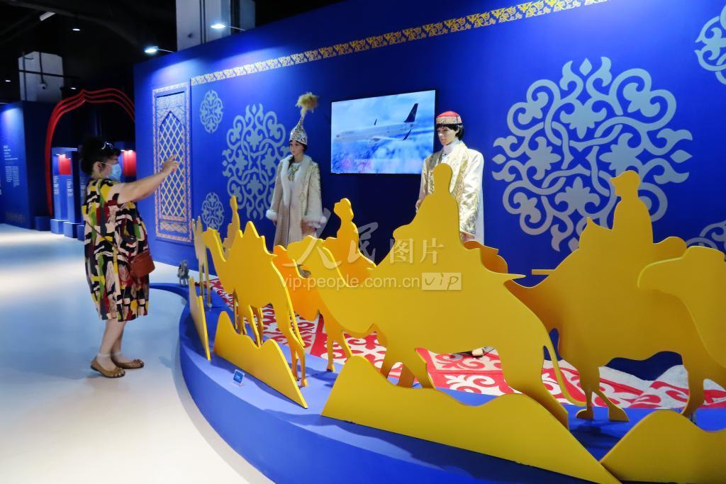 2022年8月26日,观众在“科技赋能文化旅游 洞见哈萨克斯坦”展览现场参观、体验。