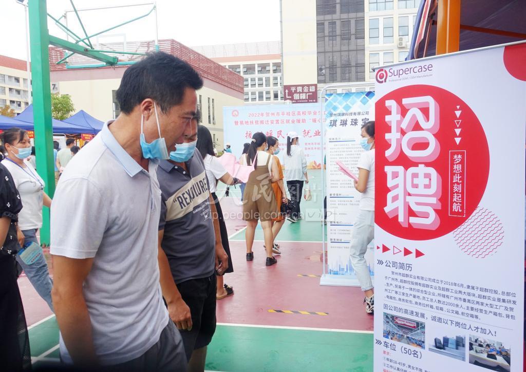 2022年9月9日,在广西贺州市平桂区黄金珠宝产业园,求职者在招聘会现场了解就业信息。