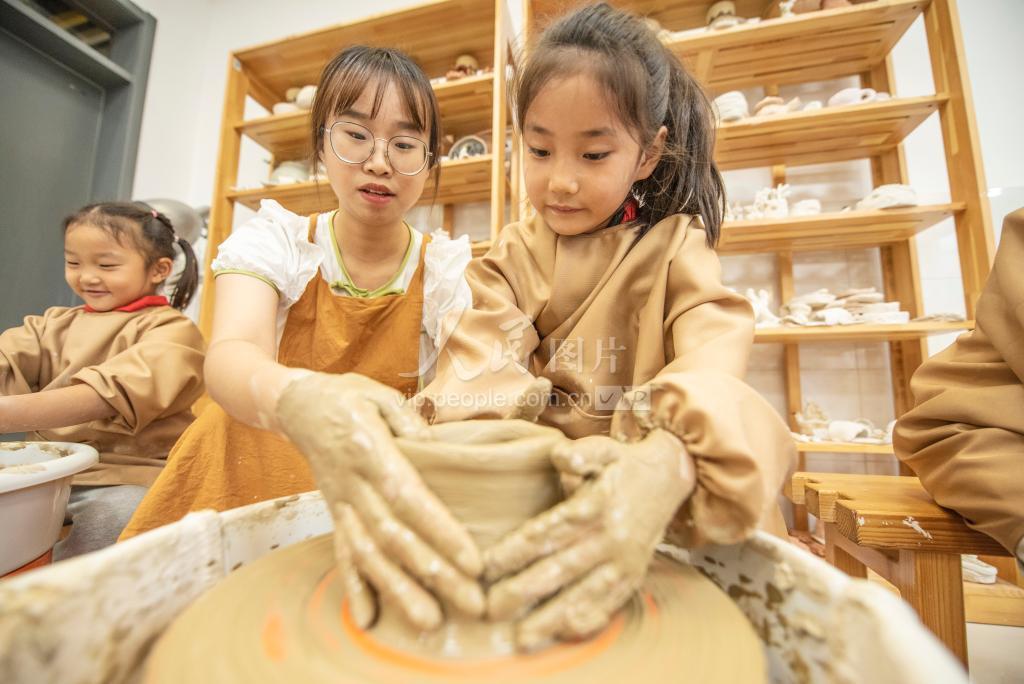 2022年9月21日,在江苏省宿迁市宿城区南京师范大学附属中学宿迁分校南校区,陶艺社团延时课堂,学生正在陶艺创作。 近年来,江苏省宿迁市宿城区南京师范大学附属中学宿迁分校南校区积极探索延时课堂服务形式,结合学生兴趣爱好,开展陶艺、剪纸、扎染等传统手艺社团,同学们在快乐学习中,感受传统文化的魅力,有效助力“双减”。