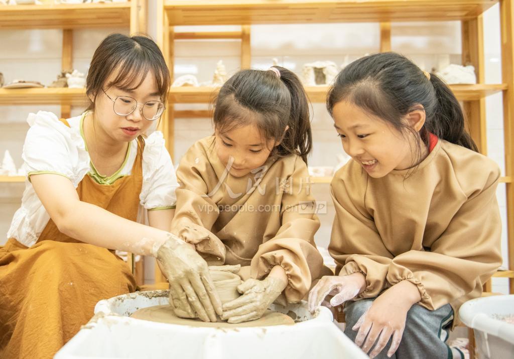 2022年9月21日,在江苏省宿迁市宿城区南京师范大学附属中学宿迁分校南校区,陶艺社团延时课堂,学生正在陶艺创作。 近年来,江苏省宿迁市宿城区南京师范大学附属中学宿迁分校南校区积极探索延时课堂服务形式,结合学生兴趣爱好,开展陶艺、剪纸、扎染等传统手艺社团,同学们在快乐学习中,感受传统文化的魅力,有效助力“双减”。
