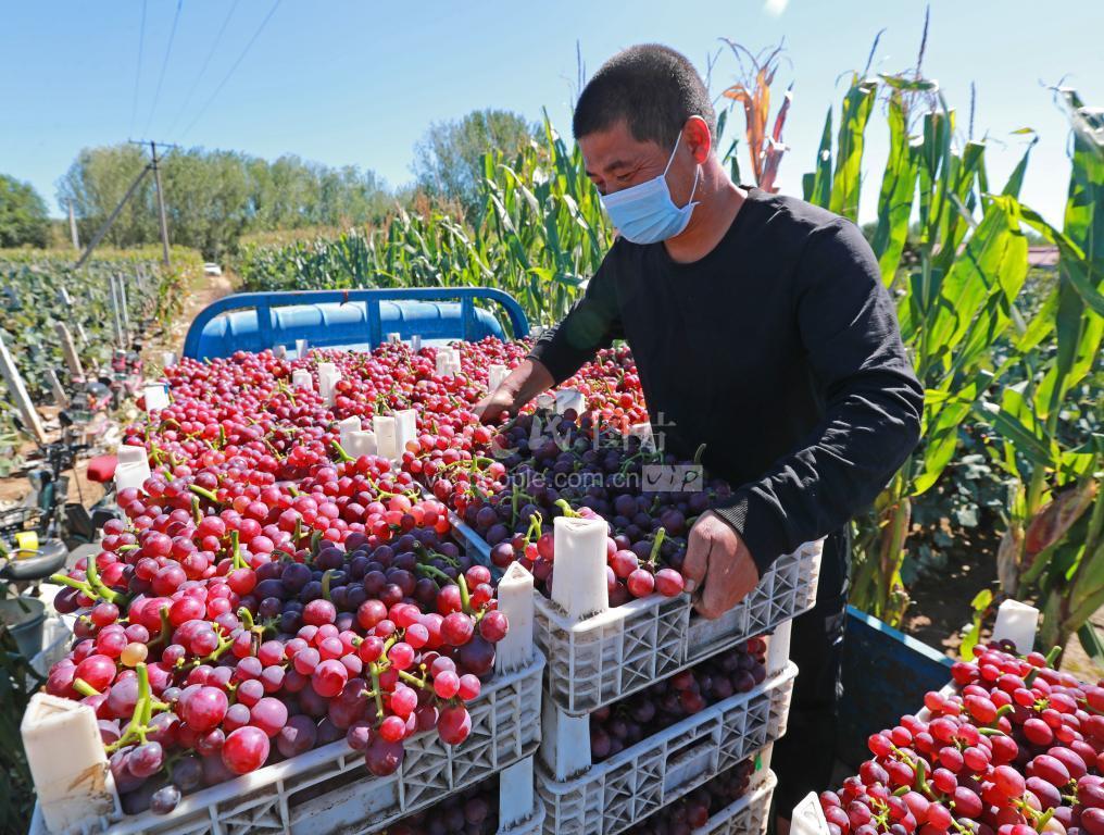 秋分时节,河北省唐山市玉田县林头屯乡后户部庄村的农民抢抓农时,忙着采摘、挑捡、打包、搬运丰收的葡萄,一片忙碌景象。 近年来,河北省唐山市玉田县林头屯乡充分利用地域资源优势,探索落实“一村一品”,着力发展特色葡萄产业,助农增收致富,助力乡村振兴。
