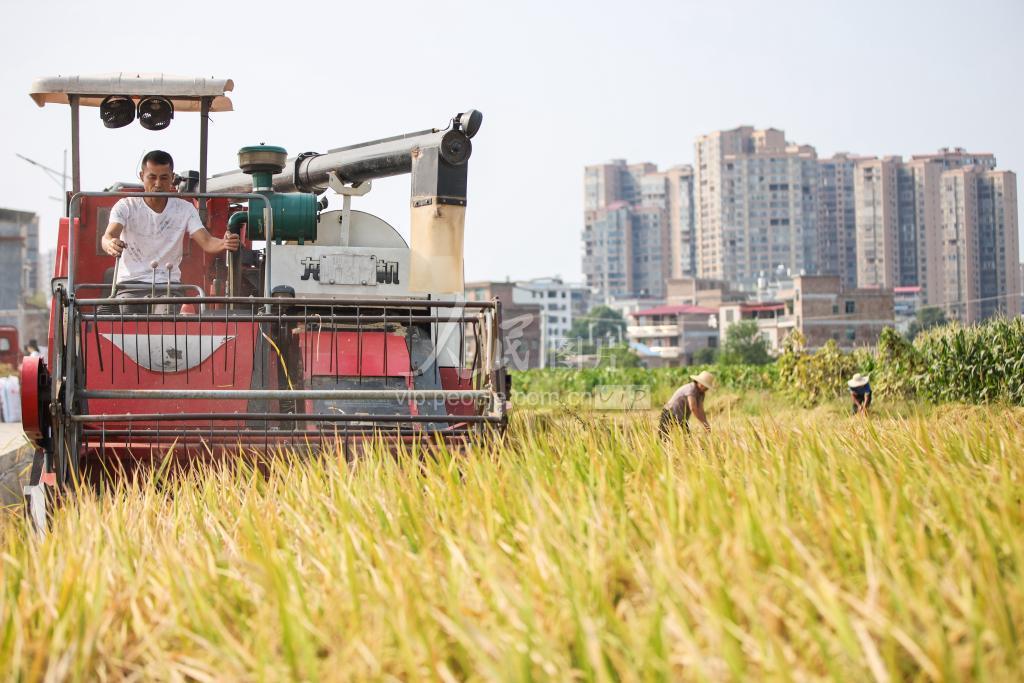 秋分时节,在湖南省永州市蓝山县,当地农民抓农时收获农作物,田间地头一派金秋农忙景象。