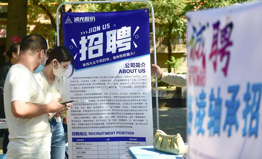 2022年9月28日,求职者在河南省洛阳市涧西区重庆路街道二社区“就业服务进社区”招聘会上咨询相关信息。