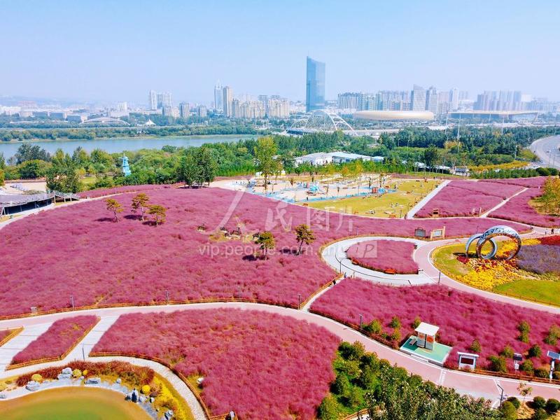 2022年9月28日,河南省三门峡市虢都花海公园的粉黛乱子草进入盛开期,呈现出一片粉色海洋,为城市增添一道靓丽的风景。