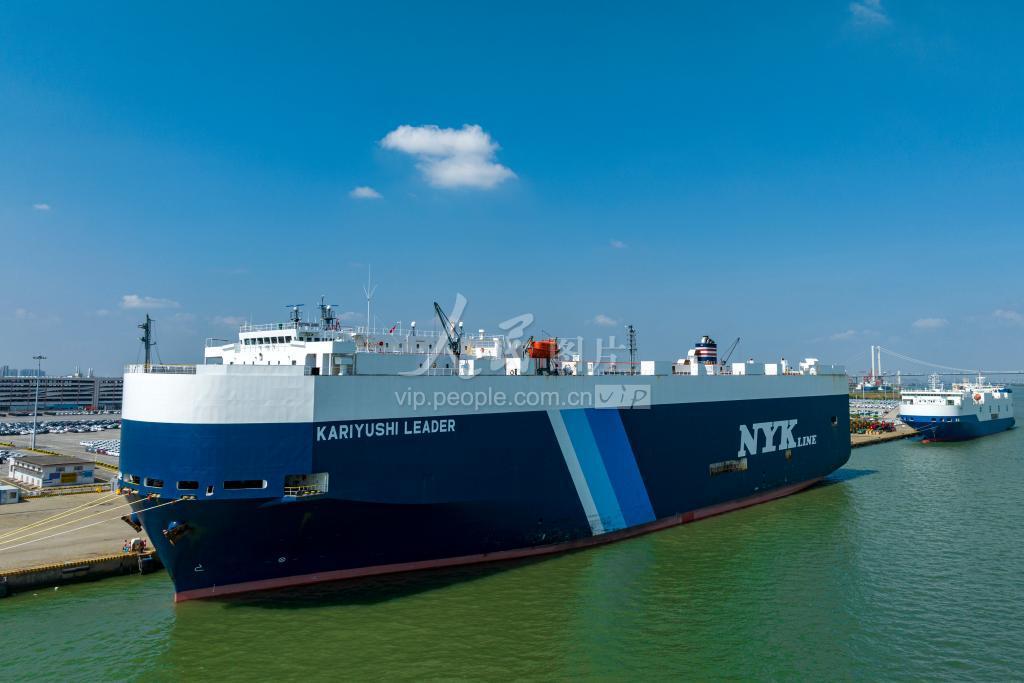 2022年10月6日,在位于广东省广州市南沙区沙仔岛的广州港南沙汽车码头,码头上停满各种车辆,滚装轮船有序开展装卸作业,整个码头一派繁忙。