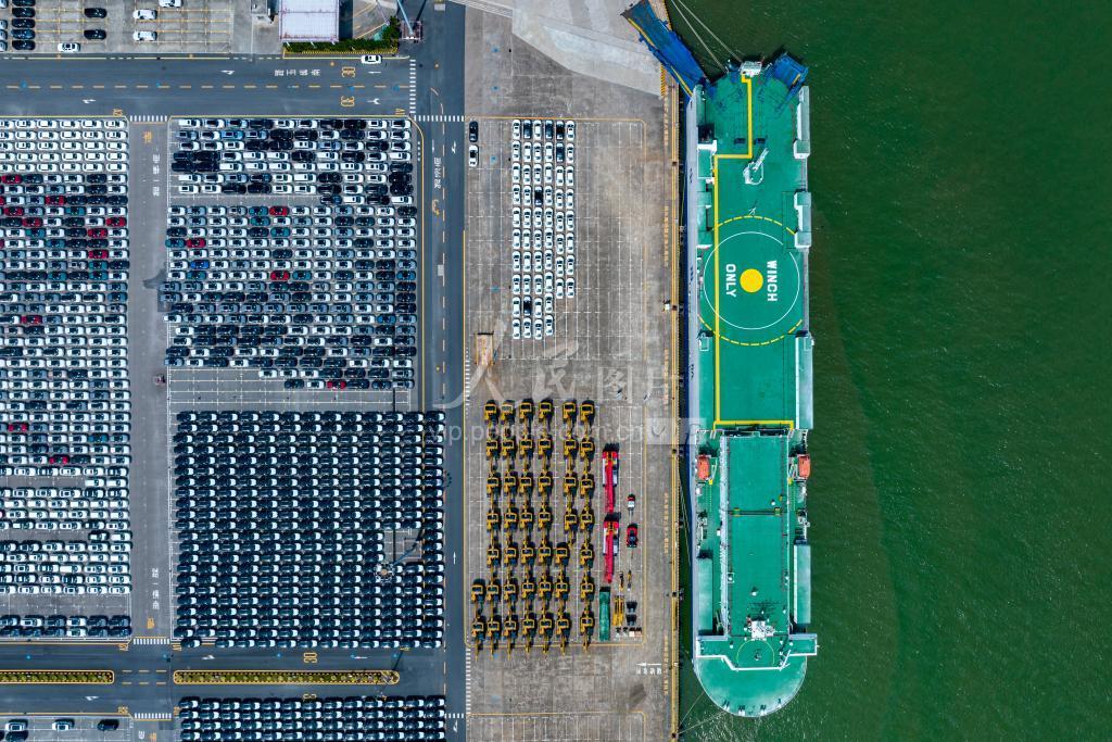 2022年10月6日,在位于广东省广州市南沙区沙仔岛的广州港南沙汽车码头,码头上停满各种车辆,滚装轮船有序开展装卸作业,整个码头一派繁忙。