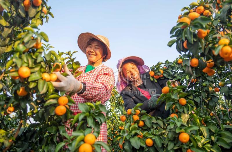 2022年10月25日,湖南省永州市道县蚣坝镇光家岭村柑橘产业园,村民在采摘金秋沙糖桔。 近日,道县果农种植的金秋沙糖桔迎来成熟采摘季,果农抢抓农时采摘,供应市场。近年来,道县依托土壤、气候、光照等自然地理优势,发展绿色果业经济,吸纳更多农户参与沙糖桔种植管理、加工销售,带动农民增收致富,助力乡村振兴。