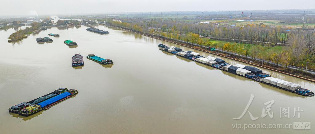 2022年11月20日,京杭大运河江苏宿迁段的货船穿梭往来,一派繁忙景象。