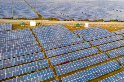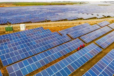 2022年11月21日,国网江西省宜春市奉新县供电公司党员服务队在宋埠镇的大型光伏发电站巡检,确保设备安全运行。