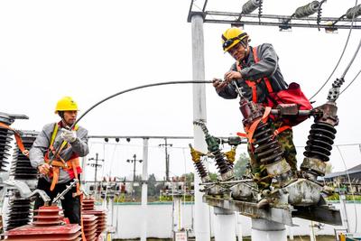 2022年11月22日,江西省宜春市奉新县罗市镇35千伏变电站,国网奉新县供电公司工作人员正在对变电设备进行全面检修消缺。 为确保供电设备“健康”过冬,连日来,国网奉新县供电公司积极组织人员深入辖区18座35千伏变电站及输配电线路和光伏发电站进行全面巡检消缺、改造扩容,及时消除安全隐患,保障设备稳定运行,全力满足人民群众生产生活的用电需求。