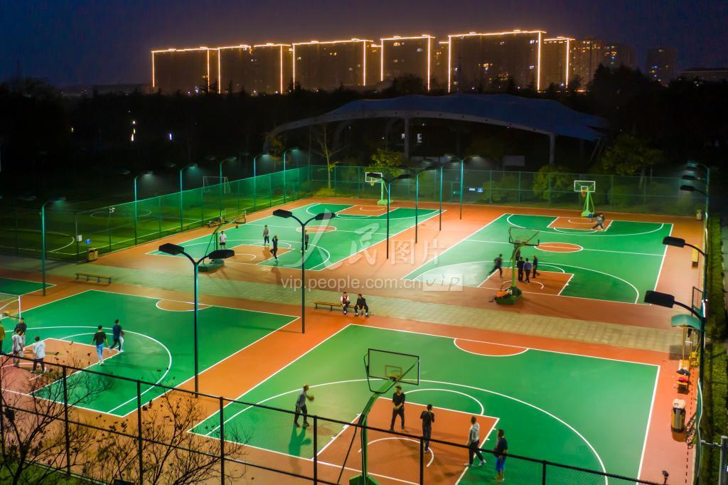 2022年11月24日晚,江苏省体育宿迁市宿城区古黄河体育公园灯火通明,市民正在打篮球。