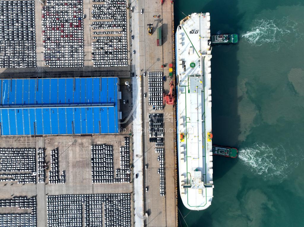 2022年11月25日,在江苏连云港港东方公司码头上,滚装轮停靠在59号泊位准备装载出口车辆。 今年以来,江苏连云港港打造“区域性滚装件杂货进出口集散中心”战略方案,优化车辆通关流程,深挖货源拓展业务上持续发力,千方百计稳存量、挖增量,加大货源开发力度,全力冲刺滚装出口车辆20万台目标。