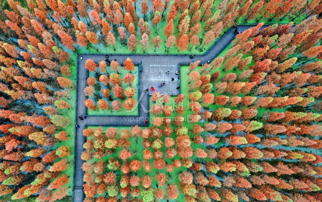 近年来,贵州省遵义市播州区播州湿地加大生态文明建设,着力生态环境改善,大大提高了生态环境质量。 日前,播州湿地公园里 的水杉树叶由绿转黄,更多的叶子似火通红,吸引游客到水杉林中观光旅游、唱歌跳舞、自拍抖音,热闹非凡,感受如火冬天的温暖。