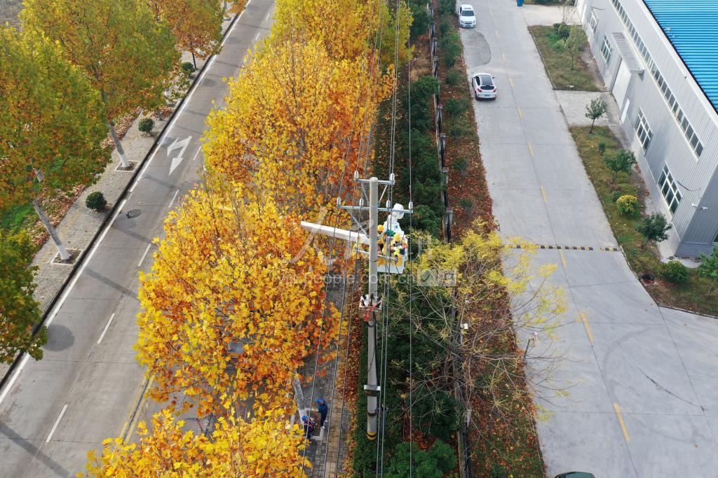 2022年11月25日,在安徽省亳州市涡阳县经济技术开发区,国网安徽涡阳县供电公司带电作业人员正在涡阳10千伏兴业路136线006号杆上,开展带电安装跌落式熔断器绝缘护套作业,进一步提高线路运行的可靠性,保障迎峰度冬期间经济技术开发区企业用电安全。