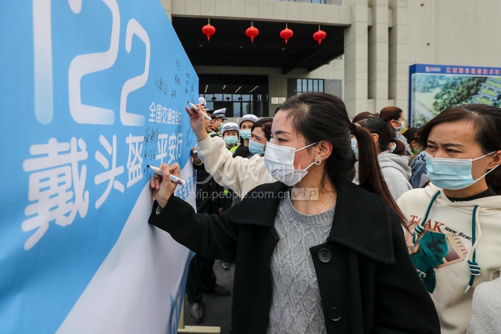 2022年11月24日,江西省上栗县公安局交警大队民警在辖区企业开展交通安全知识宣传时,企业员工在交通安全承诺墙上签名。