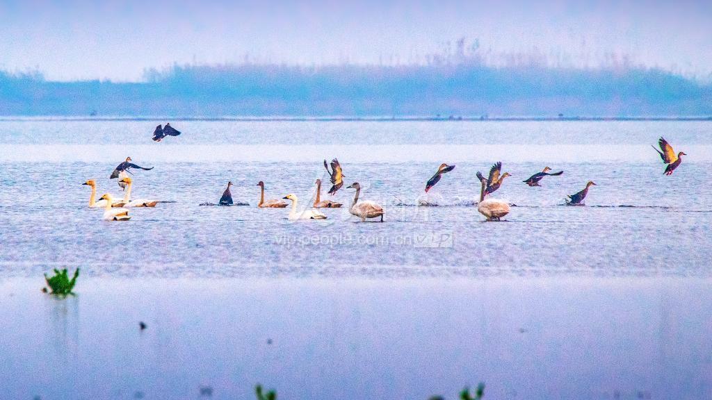 2022年11月25日,江苏南京市溧水区石臼湖湿地,成群结队的天鹅、鸿雁等各种冬候鸟在湿地觅食栖息,俨然一幅和谐共生的生态画卷。 近年来,随着石臼湖湿地生态环境的持续改善,迁徒到这里越冬栖息的候鸟越来越多,预计今年12月将达到高峰。