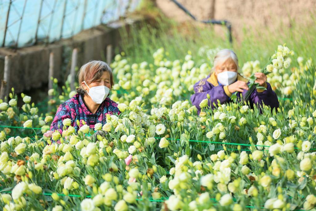 眼下,在新疆昌吉回族自治州呼图壁县园户村镇上二工村大棚花卉种植基地种植的洋桔梗、康乃馨等鲜花开得正艳,深受市场青睐。该基地共有花卉大棚15座,种植的鲜花主要销往疆内市场。近年来,呼图壁县因地制宜,不断调整农作物种植结构,引导农民发展设施农业,帮助农户拓展销售渠道,带动农民增收致富,助力乡村振兴。