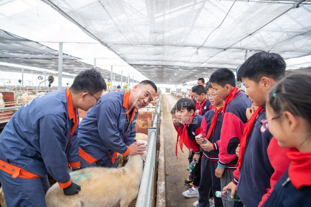 2022年11月25日,浙江省湖州市长兴县吕山乡共享牧场内,牧场技术人员正在为学生讲湖羊的习性。 长兴县吕山乡“共富课堂”开课了。当天,吕山乡中心小学组织学生们来到吕山乡共享牧场,通过与参观羊舍、小羊互动等环节,体验湖羊养殖过程,感受家乡湖羊文化。