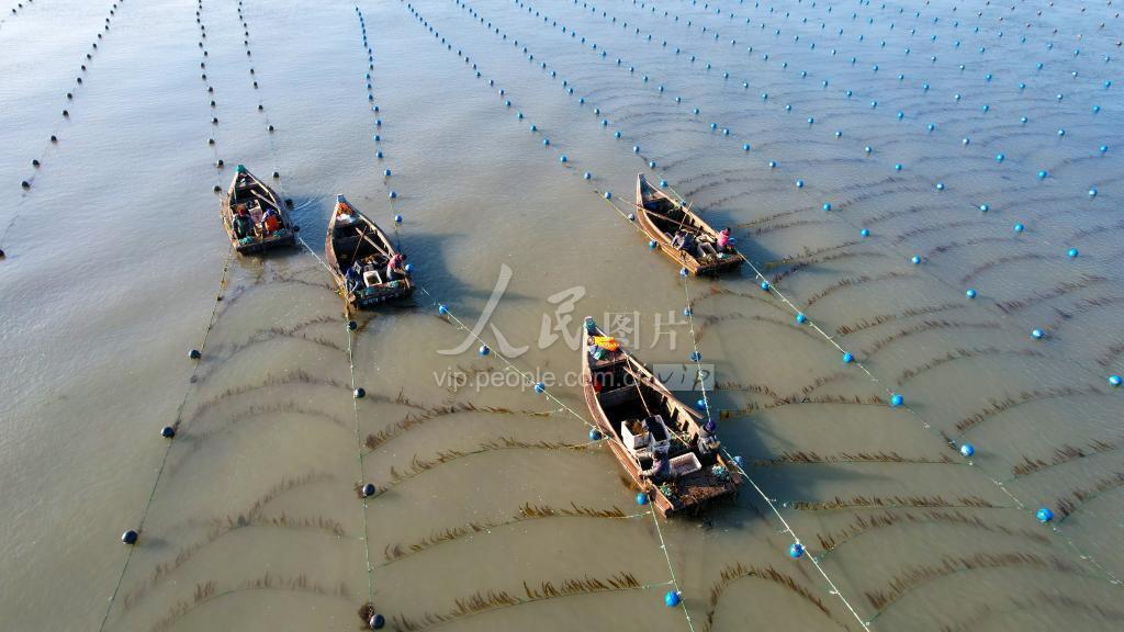 初冬时节,在山东省荣成市各大水产养殖公司,养殖工人正忙着将海上育苗区里的海带苗采收回来,按一定间距夹到海带绳上,再投放到海上养殖区。各种船只穿梭在蓝天碧海与挂着五彩浮漂的海带架间,宛如游在画中。 据了解,海带产业是荣成市农民增收致富的主导产业之一,素有“中国海带之乡”美誉,每年十一二月是海带的“播种”期。