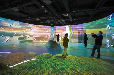 2022年11月28日,浙江省杭州市淳安县千岛湖中心湖区旅游码头秀水街,游客正在体验“千岛湖·梦之岛”乐园元宇宙概念项目。