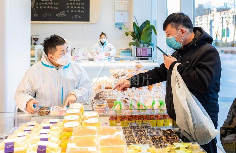 2022年12月3日,在位于呼和浩特市玉泉区的凯德广场•诺和木勒购物中心,顾客在一家蛋糕店选购商品。