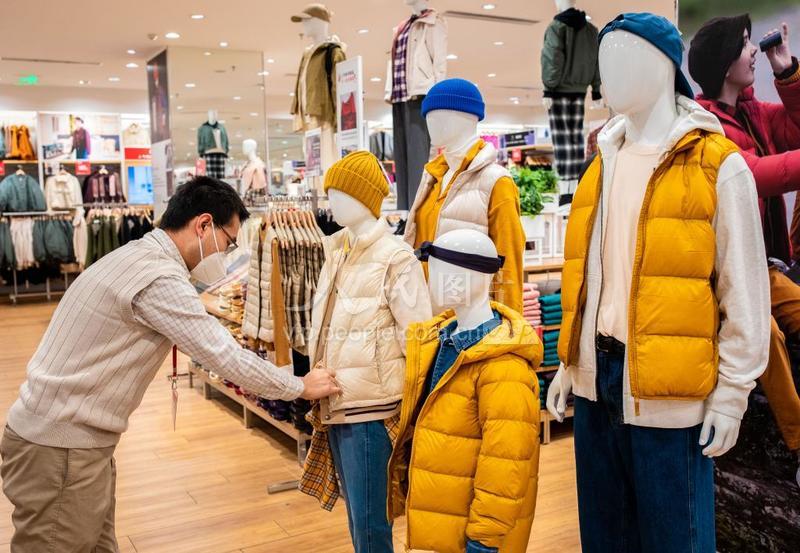 2022年12月3日,在位于呼和浩特市玉泉区的凯德广场•诺和木勒购物中心,一家服装店的工作人员在整理商品。