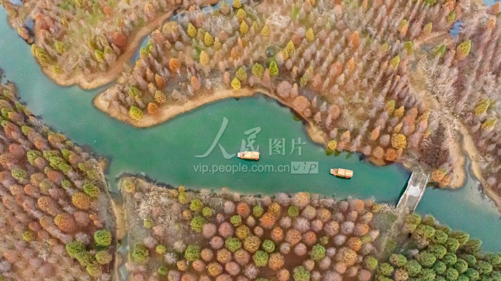2022年12月13日,江苏省宿迁市宿豫区新庄彬荷园湿地,五彩斑斓、错落有致的红杉树与清澈碧绿的河水相互映衬,犹如一幅色彩艳丽的“杉”水画。 近年来,江苏宿豫牢固树立“绿水青山就是金山银山”理念,坚持走生态优先、绿色发展之路,发展“农旅+产业+文化”乡村旅游,合理开发杉、荷文旅,打造宜游宜业的生态绿色产业。