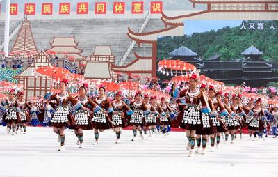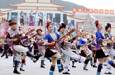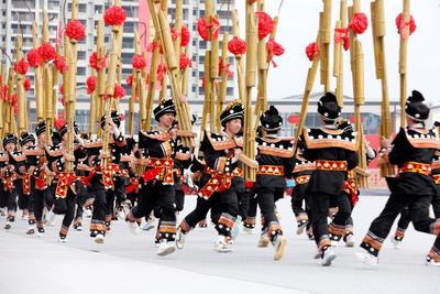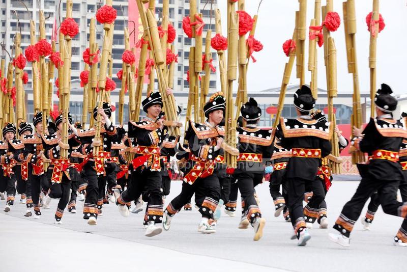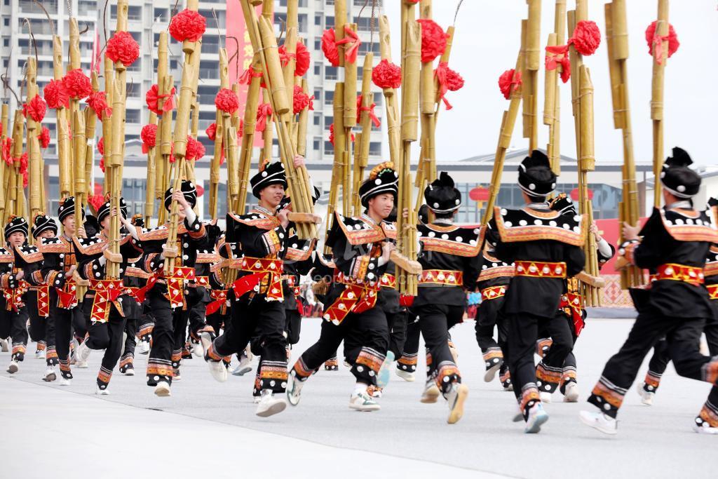 2022年12月15日,广西壮族自治区柳州市三江侗族自治县举行自治县成立70周年庆祝大会,当地各族同胞载歌载舞庆县庆。
