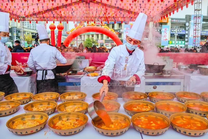 2022年12月28日,重庆市綦江区万达广场热闹非凡,第四届北渡鱼千人宴活动正在举行,来自当地的行业代表、环卫工、社区工作者等280人欢聚一堂,免费品尝鲜香美味的綦江特色美食北渡鱼。