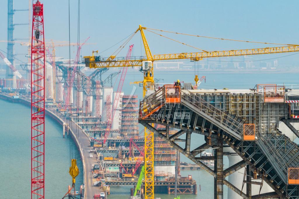 2023年1月5日,在位于广东省珠海市高栏港经济区的黄茅海跨海通道建设现场。