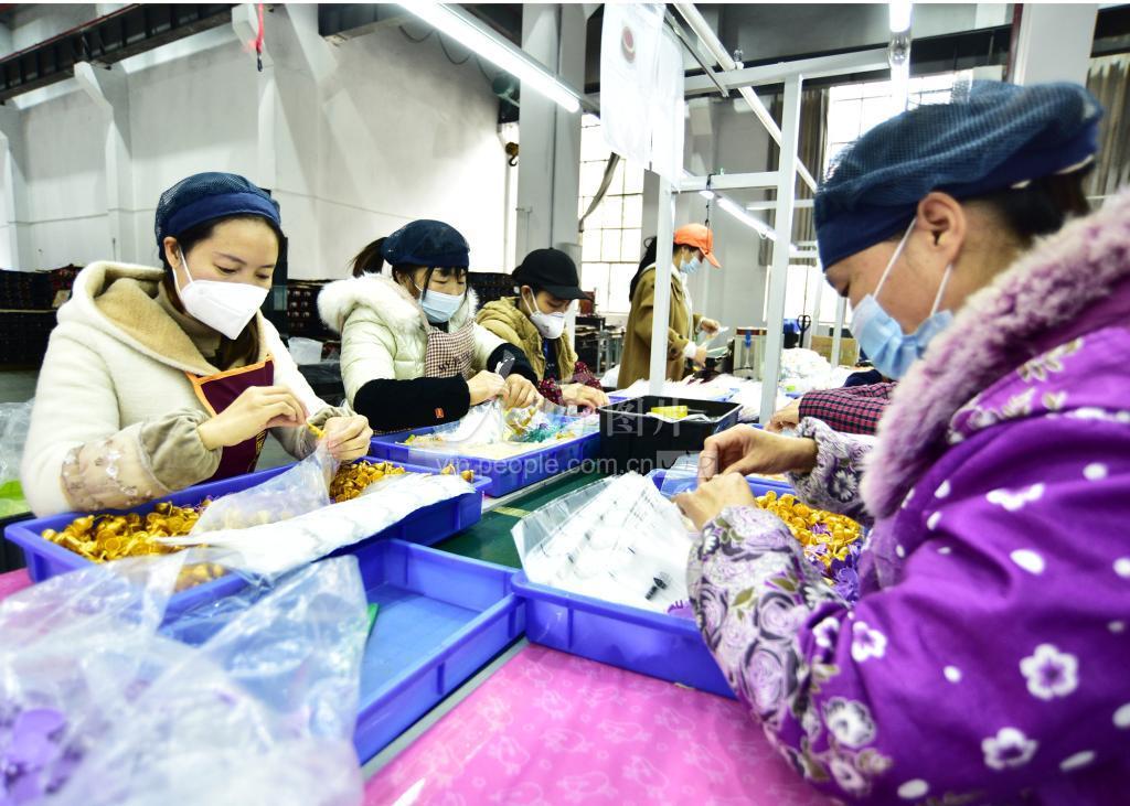 2023年1月6日,湖南省郴州市嘉禾县经开区一外贸企业,工人们忙着加工生产出口玩具。
