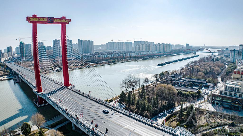2023年1月10日,京杭大运河江苏宿迁宿豫段,货船穿梭往来,一派繁忙景象。