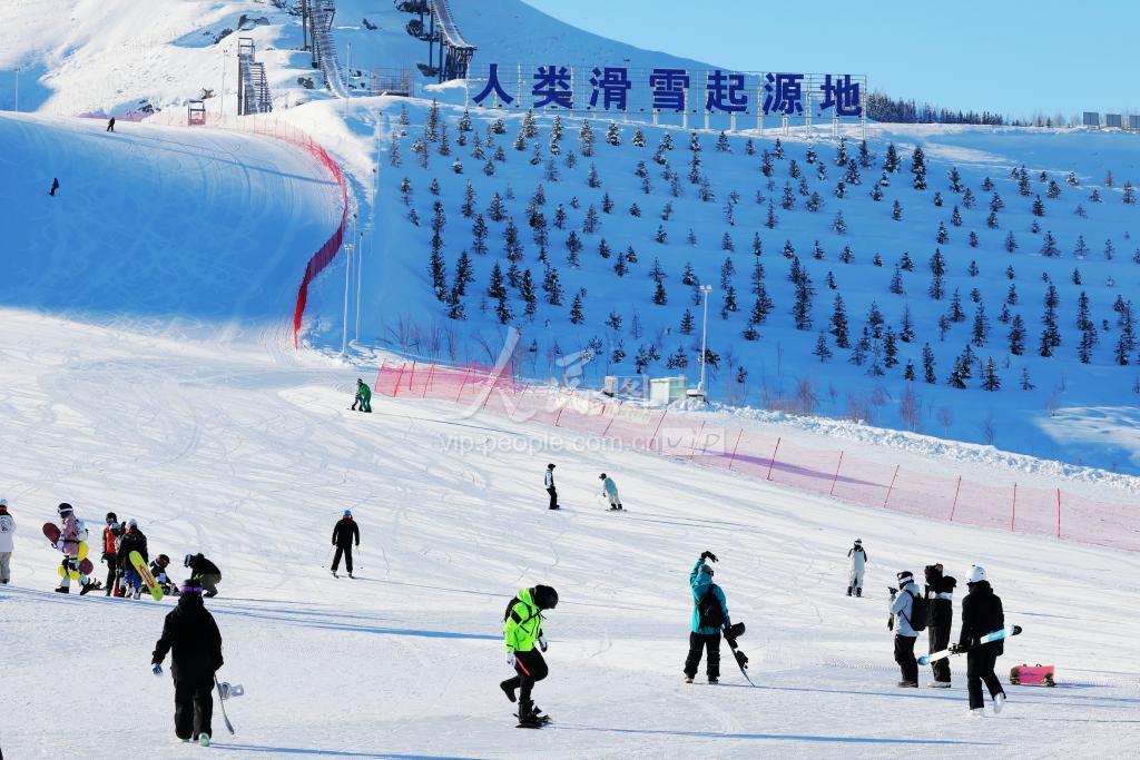 2023年1月22日,农历大年初一,天气晴朗,新疆阿勒泰市的将军山国际滑雪度假区滑雪迎来众多滑雪爱好者前来滑雪,感受冰雪运动,喜迎新年到来。