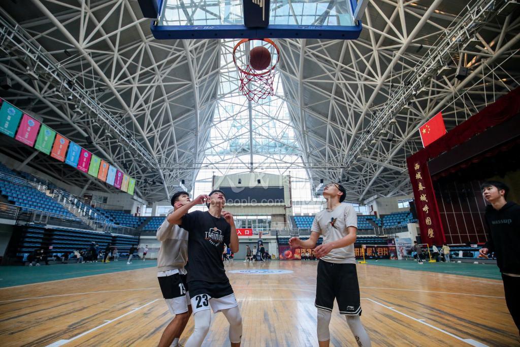 2023年1月25日,在新疆昌吉回族自治州呼图壁县文化体育中心内,众多居民在此打球健身。