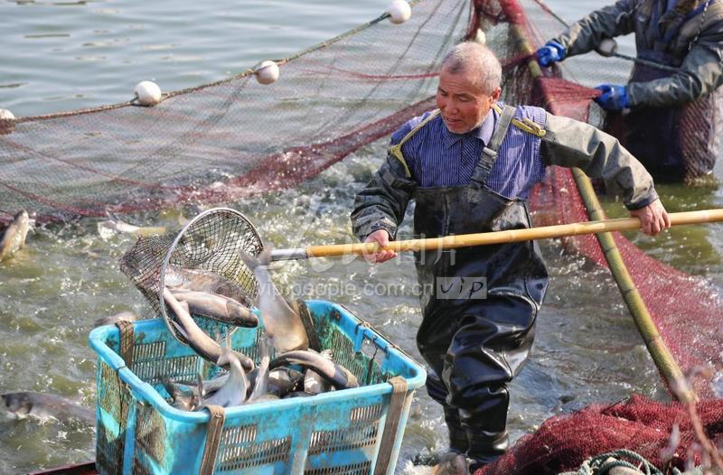 2023年1月31日,江苏省海安市墩头镇杜楼村养鱼户抢抓春放春养的最佳时间段,忙着捕捞鱼种并进行放养。近年来,江苏省海安市大力实施以鱼养水、以鱼净水、以鱼护水的生态治水模式,将河道进行发包养鱼净化水质的同时增加农民收入,实现经济效益和生态效益双赢。