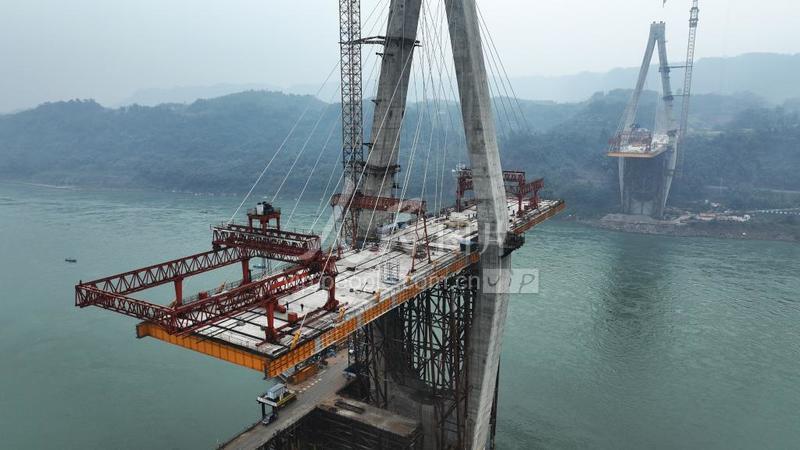 2023年2月12日,江安长江二桥加快建设,抢抓项目进度。