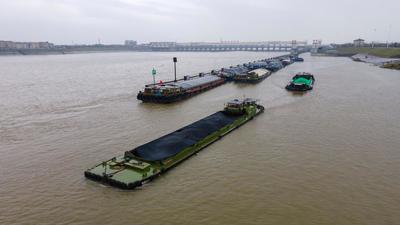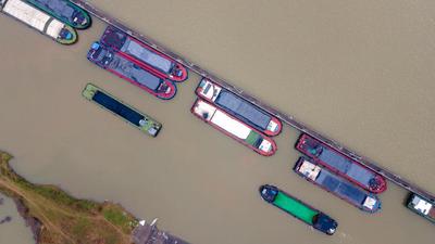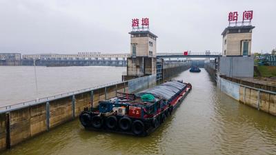 2023年2月13日,浙江省金华市钱塘江中上游衢江航道上,货船排起长队,有序通过游埠船闸。 经过20天的停航岁修,2023年2月11日,钱塘江上游衢江流域的兰溪游埠、姚家船闸重新开闸,标志着钱塘江内河航运正式恢复通航。 浙江省金华市境内共有兰江、衢江、金华江三条四级航道,航道总长约50公里,可通航500吨级船舶,主要包括矿建、钢材、煤炭、黄沙、农副产品等运输货种。据统计,2022年,姚家、游埠船闸累计过闸19137艘次,船闸过闸量1407.9万吨,比2021年增长约6%。